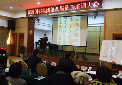 紅梅迎雪放;玉兔踏春來(lái)。喜迎著新春的勃勃生機(jī),洋溢在新年的歡聲與笑語(yǔ)里——新新圖書(shū)集團(tuán)第八屆員工培訓(xùn)大會(huì)于2月15、16日在陽(yáng)光128大酒店隆重舉行。出席此次大會(huì)的主要是集團(tuán)各分公司的總經(jīng)理、業(yè)務(wù)精英、財(cái)務(wù)主管以及售后人員,各公司編輯部也列席會(huì)議。此次培訓(xùn)的目的是為了提升員工的綜合素質(zhì)、加強(qiáng)員工的溝通能力、指導(dǎo)員工的專(zhuān)業(yè)技能、提高業(yè)務(wù)人員的銷(xiāo)售技巧等。