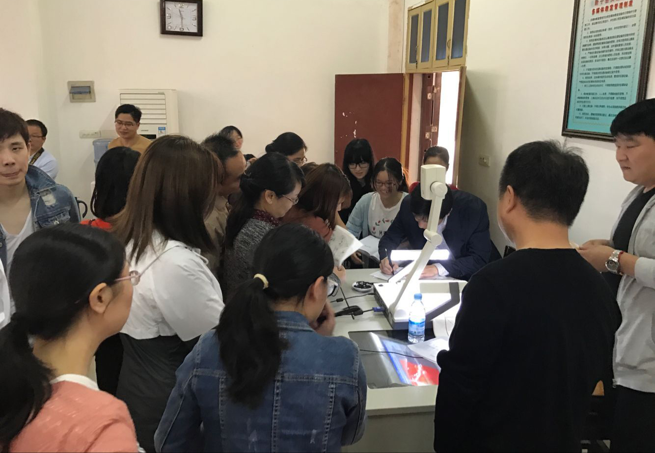 書法家荊霄鵬老師不時在現場與學生及老師們進行交流,給他們分享書法創作中的心得,并鼓勵他們練好漢字,更好的弘揚中華民族傳統的書法藝術。在場的所有人都被荊霄鵬老師生動的演講所感染,并希望墨點“書法家進校園”活動今后能持續開展。