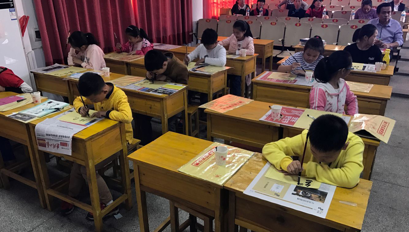 2016年10月,“墨點字帖”響應江西省南昌市新聞出版廣電局、江西省南昌市新華書店號召,參與“護苗2016,綠書簽”活動,我們特邀著名書法家荊霄鵬老師為新干縣實驗小學、新干縣逸夫小學在校師生對書法基礎知識、字體結構進行了講解。