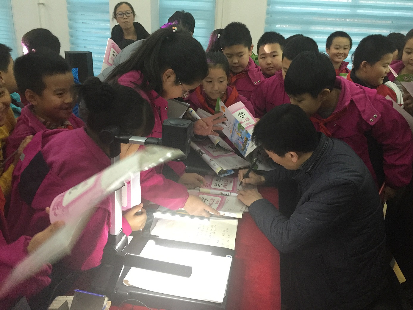 會后,大量學生圍著荊老師要簽名。