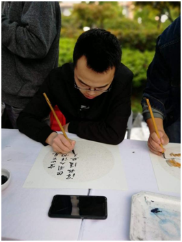 4月21日,黨支部成員們參加了“四個百萬’看洪山暨洪山街‘慶五一 迎軍運’活動”,并現場繪制了關于軍運會的美術書法作品。