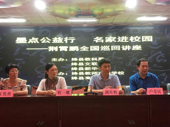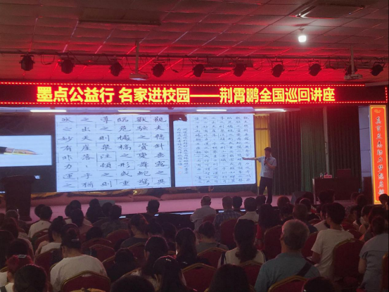 2019年8月19日上午,由山西省運城市絳縣教科局、縣文聯、縣新華書店主辦,絳縣教師進修學校、絳縣高級中學承辦的墨點公益行“名家進校園”——荊霄鵬老師書法知識公益講座走進絳縣中學。講座由縣教育工會主席彭振主持,縣教科局黨組成員盧愛民致辭,縣文聯主席程一娜、縣政府督學王俊燕等參與,全縣書協會員、中小學書法專職教師及絳縣中學部分學生近二百人認真聽取了此次講座。