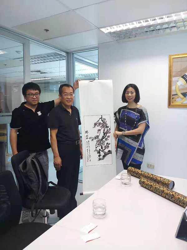 27日上午,王奎英董事長一行拜訪了南美有限公司,雙方進行了友好交流,表達了希望在兩國市場上加強雙方合作的意愿。隨后,王奎英董事長祝賀南美有限公司成立七十周年,并贈送了“欣欣向榮”畫作。