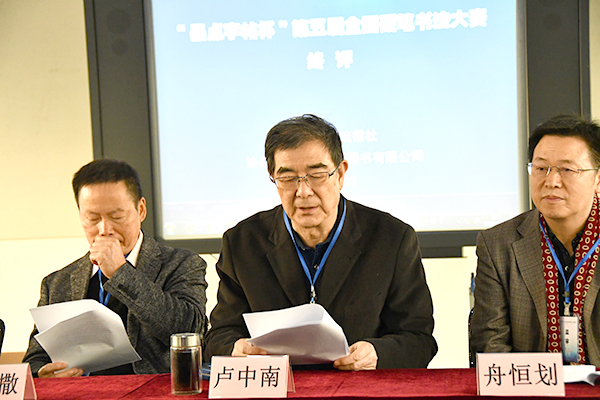 2019年12月10日,由書法報社主辦,武漢市新新圖書有限公司協辦的“墨點字帖杯”第五屆全國硬筆書法大賽終評工作在湖北武漢舉行,盧中南、朱以撒、張秀、荊霄鵬、嚴海南擔任了此次大賽的評委。
