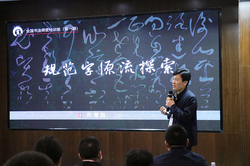 在此次特訓班上,荊霄鵬老師通過《規范字源流探索》《規范字的“規范”體現》《規范字作品技法講解》三堂專題授課,詳細地梳理了規范字的源流,展示了自古至今不同時代的“規范字”作品;仔細地講解了規范字的特點、易錯點,明確了規范字教學時如何做到準確示范;完整地示范了一幅規范字作品的創作過程,分享了創作規范字作品的經驗與心得。從理論到實踐,幫助學員透徹地理解規范字,掌握規范字,提升規范字的書寫和教學水平。