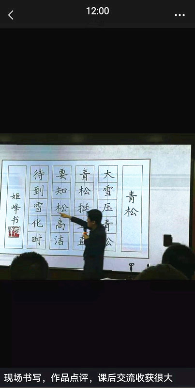 為期兩天半的特訓班主要由開班儀式,三場規范字專題授課,規范字作品輔導、點評,規范字教學分享研討,“墨點字帖探索之旅”,以及結業典禮組成,全程節奏緊湊、內容充實。荊霄鵬老師既從書法史的角度追溯了規范字的源流,又全面梳理了規范字的特點和書寫要求。老師書寫示范時,學員屏息凝神,現場鴉雀無聲;老師點評作品時,學員興致勃勃,現場氣氛活躍。老師全身心投入,學員獲得感滿滿。