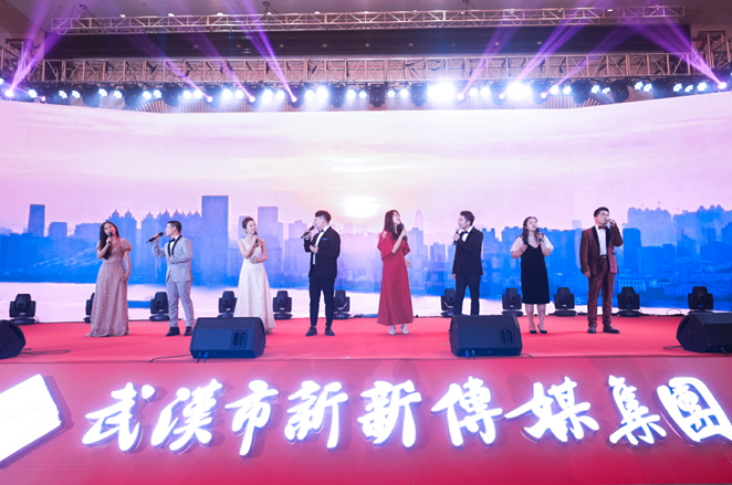 武漢市新新傳媒集團有限公司黨支部、愛德森森公司、電子商務部、民營事業部等部門和團隊依次為20周年慶典晚會獻上了多個精彩節目,在歡樂中展示了員工風采。