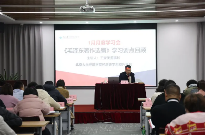 本次月度學習會的主題是“《毛澤東著作選編》學習要點回顧”。集團董事長、北京大學經濟學院經濟史學系校外導師王奎英先生,對《毛澤東著作選編》中《黨委會的工作方法》《實踐論》《矛盾論》等學習過的篇章要點進行了回顧和闡述。