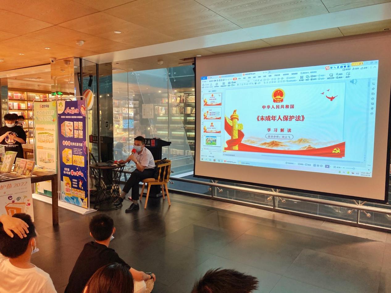 2022年綠書簽系列宣傳—普法課堂以《未成年人保護(hù)法》為宣講主題,推動社會各界參與未成年人關(guān)愛保護(hù)行動,促進(jìn)未成年人健康成長?;顒友埩藖碜苑山绲暮骑w律師,與到場的學(xué)生及家長共同探討如何從法律保護(hù)、家庭教育、社會關(guān)愛等維度去呵護(hù)未成年人成長,以及如何營造有利于未成年人健康成長的家庭和社會環(huán)境。