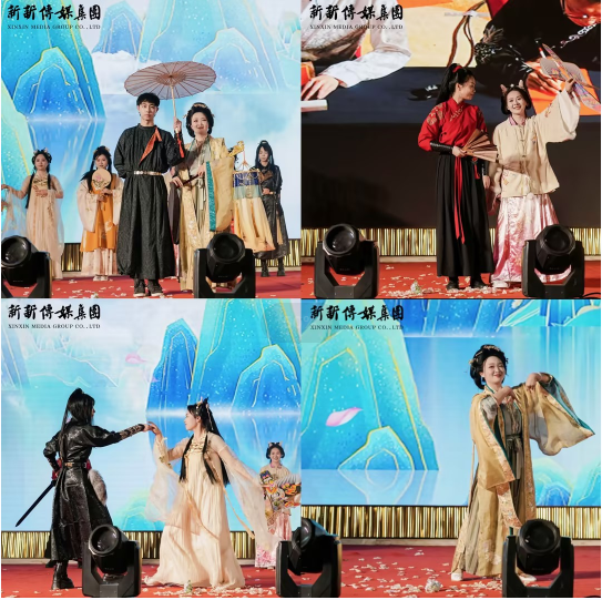 龍騰萬里,新新向榮。下午三點半,新春團拜會文藝演出隆重拉開帷幕。舞蹈、戲劇、朗誦、歌曲、漢服走秀、小品、樂器,書法各類才藝在新新人的舞臺上交相輝映,璀璨奪目。每一位表演者都以最飽滿的熱情和最精湛的技藝,展現出新新傳媒人的精神風貌和文化底蘊。