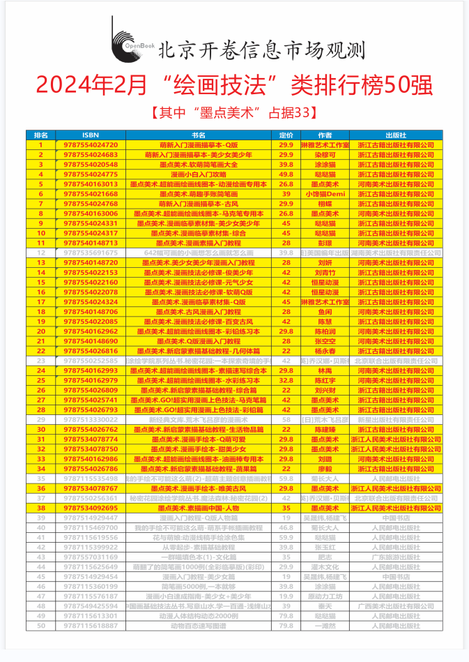 2024年2月“繪畫(huà)技法”類排行榜50強(qiáng)