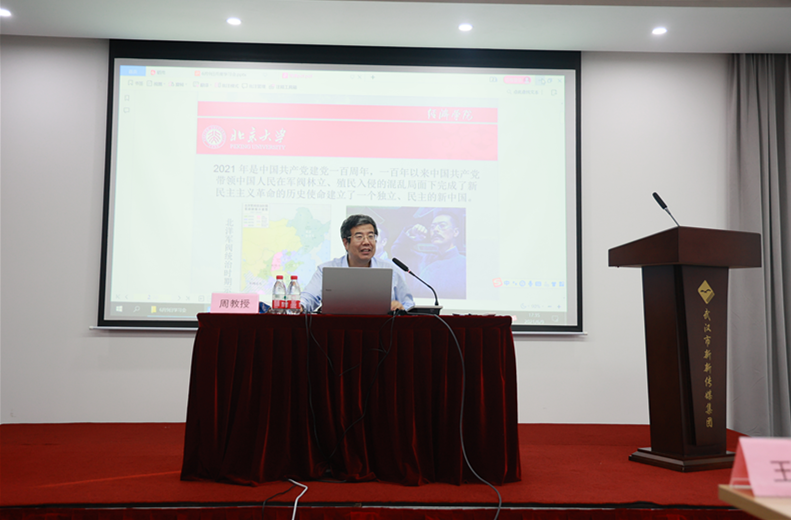 2021年5月13日17點30分,武漢市新新傳媒集團有限公司在融創智谷C2棟25樓會議室召開了5月月度學習會。此次會議是由區科經局與新新傳媒黨支部共同承辦,會議主講人是武漢大學馬克思主義學院左亞文教授,公司逾四十位中高層骨干,及科經局領導一行共同參加了此次會議?。