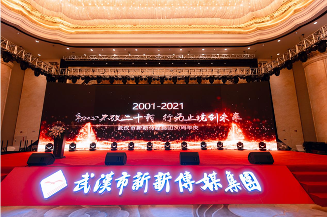 2021年4月22日,武漢市新新傳媒集團于武漢萬達瑞華酒店三樓大宴會廳舉辦了“初心不改二十載,行無止境創未來”——武漢市新新傳媒集團20周年慶典。