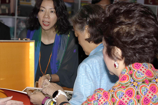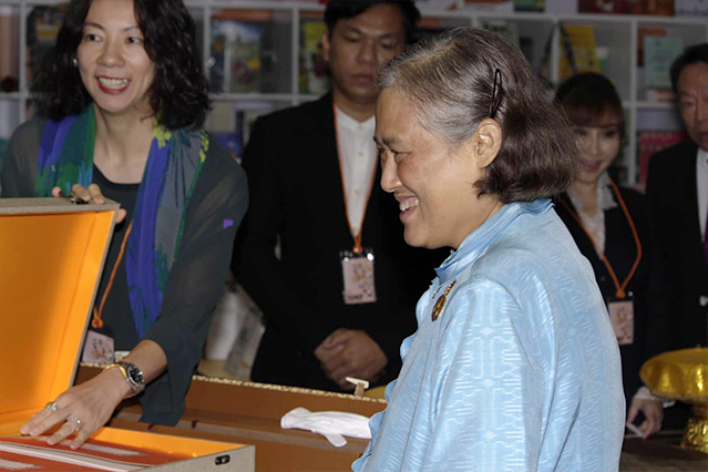 在訪問中國前夕,泰王國瑪哈扎克里·詩琳通公主殿下于泰國接受了武漢市新新圖書有限公司代表贈送的禮物,包含墨點書法、美術圖書和由中國著名書法家荊霄鵬先生揮墨書寫的“中泰友誼萬古長青”的書法作品。贈送過程中,詩琳通公主向我司董事長王奎英先生和總編輯胡曉燕女士詢問了我司書法產品等有關情況。